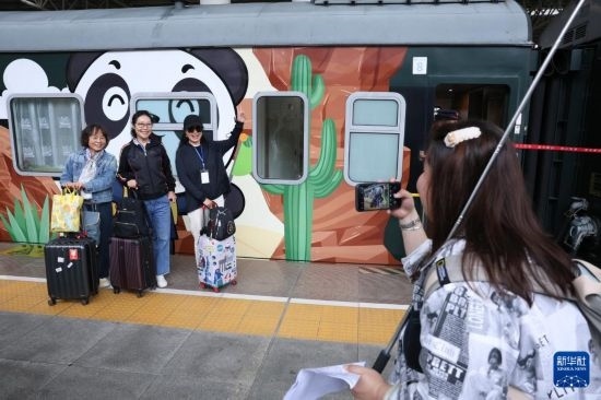 當(dāng)日,一列搭載200余名游客的Y477次“多彩貴州號(hào)”貴陽(yáng)——西雙版納——老撾“熊貓專列”從貴陽(yáng)火車(chē)站正式啟程,開(kāi)啟老撾異域風(fēng)情游。據(jù)介紹,“熊貓專列”是由中國(guó)鐵路成都局集團(tuán)有限公司運(yùn)營(yíng)的旅游列車(chē),以熊貓為設(shè)計(jì)主題,通過(guò)多種形式展示地域文化與民族特色。