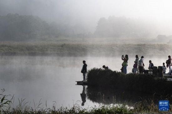 在“華中屋脊”湖北神農(nóng)架深處有一片高山濕地,一條小溪串起9個(gè)湖泊,故名“大九湖”。天剛破曉,大九湖上晨霧縹緲,風(fēng)光秀麗,游人仿佛置身于夢(mèng)幻的世界。
