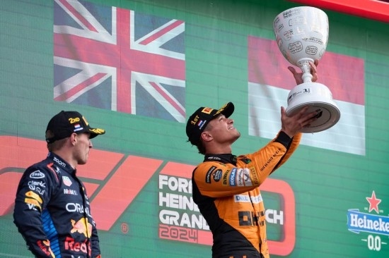 當天,諾里斯桿位發(fā)車,但在第一圈1號彎之后丟掉位置,被主場作戰(zhàn)的維斯塔潘超越。隨著比賽進行,諾里斯不斷嘗試反超,最終在第18圈實現(xiàn)了超越,開始領跑。第24圈時,處在第二位的維斯塔潘告訴車隊,自己的賽車無法進一步提速,當時他已經(jīng)被諾里斯甩開將近4秒。最終諾里斯從容領跑至比賽結(jié)束,并在最后一圈拿下最快圈速。