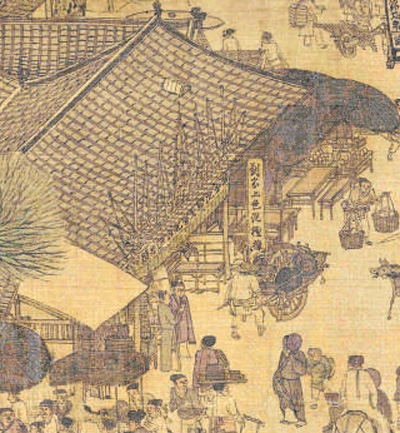 以“汴京富麗天下無”來概括北宋東京的繁榮與富庶,并不過分。《東京夢(mèng)華錄》曾記載,在東京城的酒店中二人對(duì)坐飲酒,就需要“注碗一副、盤盞兩副、果菜碟各五片、水菜碗三五只”。而東京城中,匯聚了百工精巧,無所不有。這些在大相國(guó)寺中有集中的體現(xiàn)。大相國(guó)寺是東京城內(nèi)著名的佛教大寺,又是東京城內(nèi)“萬姓交易”的場(chǎng)所,每月開放8次,各種日常用品、金銀首飾以至?xí)?、文房筆墨,都可以在寺中購(gòu)得。李清照在《金石錄·后序》中曾回憶北宋末年她和趙明誠(chéng)從大相國(guó)寺購(gòu)買碑文后,回到家中展玩對(duì)讀。可見,以大相國(guó)寺為中心形成了一個(gè)繁華的商業(yè)區(qū),成為官民士庶出入頻繁的活動(dòng)中心,拜佛上香、觀光娛樂、廟會(huì)集市、時(shí)令游賞,無所不有。