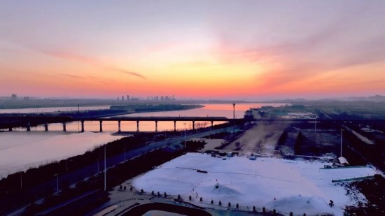 正月初五,兩趟高鐵列車(chē)在滹沱河上交會(huì)。