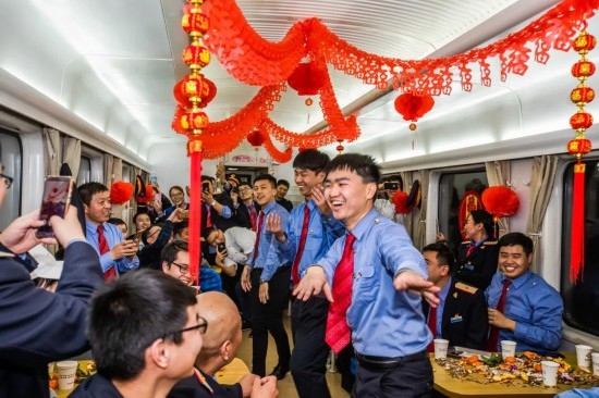 2022年大年三十,臨客列車(chē)上演列車(chē)春晚。
