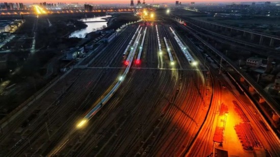 除夕當(dāng)天,一列復(fù)興號(hào)智能動(dòng)車(chē)組蓄勢(shì)待發(fā)。