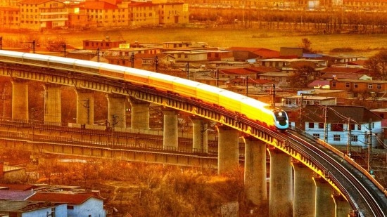 1月28日除夕,一列復(fù)興號(hào)動(dòng)車(chē)組迎著朝陽(yáng)行駛在京廣高鐵上。