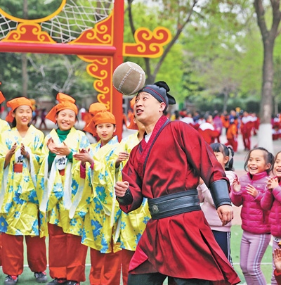 “春日蹴鞠,承載著古人的生活意趣,也帶給今人身心愉悅?!崩顐i說,“這一刻,文化傳承更具象化了!”