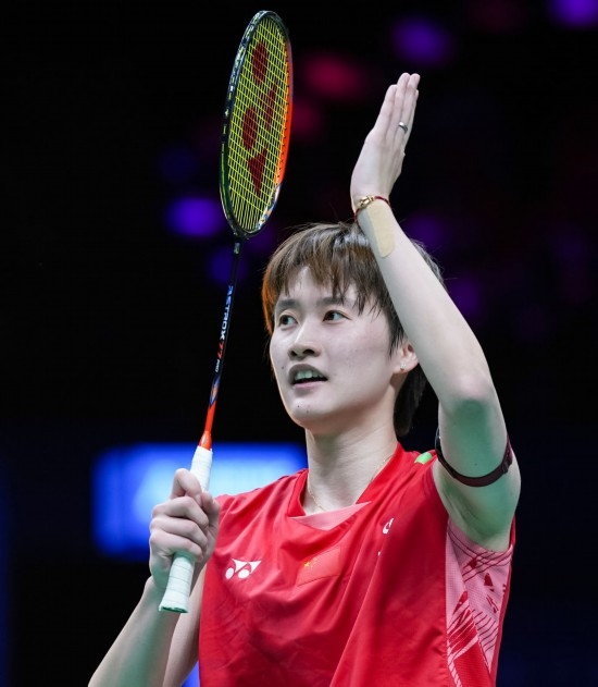 4月13日,陳雨菲在比賽后慶祝。新華社記者 孫非 攝
