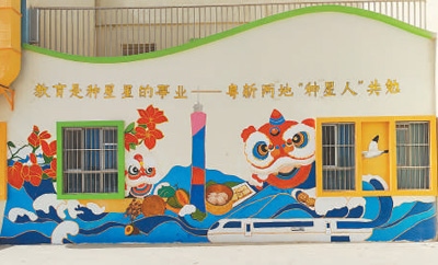 清晨,太陽剛剛升起,新疆伽師縣西克爾庫勒鎮(zhèn)中心幼兒園內(nèi),一群背著畫板、提著顏料箱的年輕人已開始忙碌。剛翻新的幼兒園墻面成為他們的畫布,大海與雪山、醒獅與烤馕、廣州塔與喀什高臺民居等粵新兩地文化元素在此相遇。百人共繪的畫卷(局部見圖),不僅點(diǎn)亮邊疆孩子們的藝術(shù)星空,也滋潤著共創(chuàng)者的心靈。