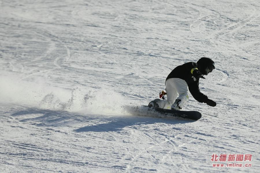 滑雪愛好者在馬鬃山滑雪場滑雪
