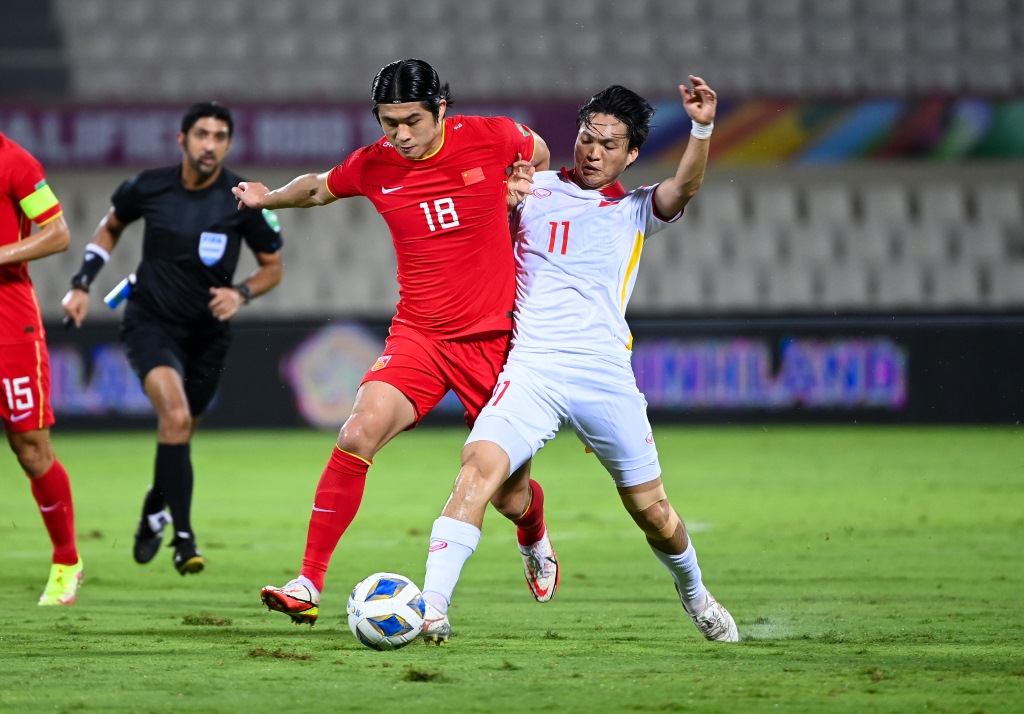 輸?shù)羟皟蓤霰荣惡螅袊牨緢霰荣愐巡蝗萦惺?。主教練李鐵在進(jìn)攻端上做出調(diào)整,劉彬彬和張玉寧獲得首發(fā)機(jī)會,與艾克森、武磊搭檔鋒線。越南隊則采取“5后衛(wèi)”陣型,通過防守反擊尋找機(jī)會。