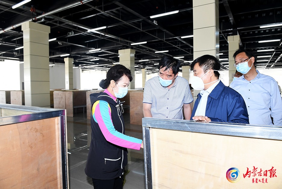 6月7日,王莉霞在二連浩特市新建方艙醫(yī)院調(diào)研。內(nèi)蒙古日?qǐng)?bào)社融媒體記者韓卿立攝
