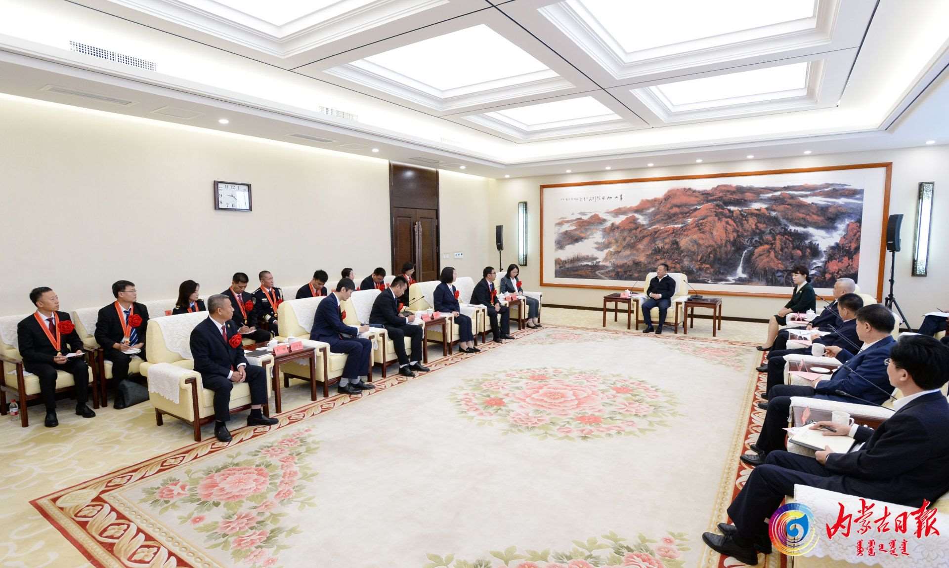 9月1日,自治區(qū)黨委書記孫紹騁,自治區(qū)黨委副書記、自治區(qū)主席王莉霞在呼和浩特會(huì)見(jiàn)我區(qū)全國(guó)“人民滿意的公務(wù)員”和“人民滿意的公務(wù)員集體”代表。內(nèi)蒙古日?qǐng)?bào)社融媒體記者袁永紅攝