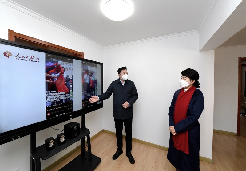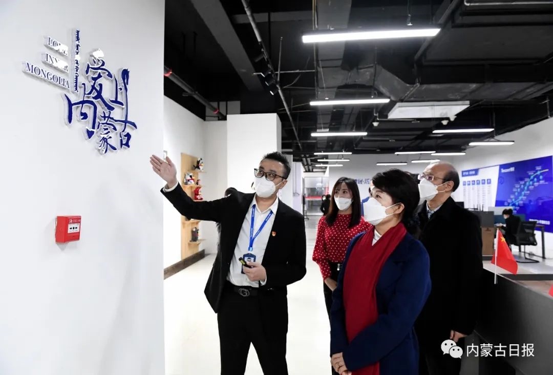 1月28日下午,王莉霞在內(nèi)蒙古騰蒙科技有限公司了解宣傳內(nèi)蒙古和自媒體運營有關(guān)情況。記者韓卿立攝
