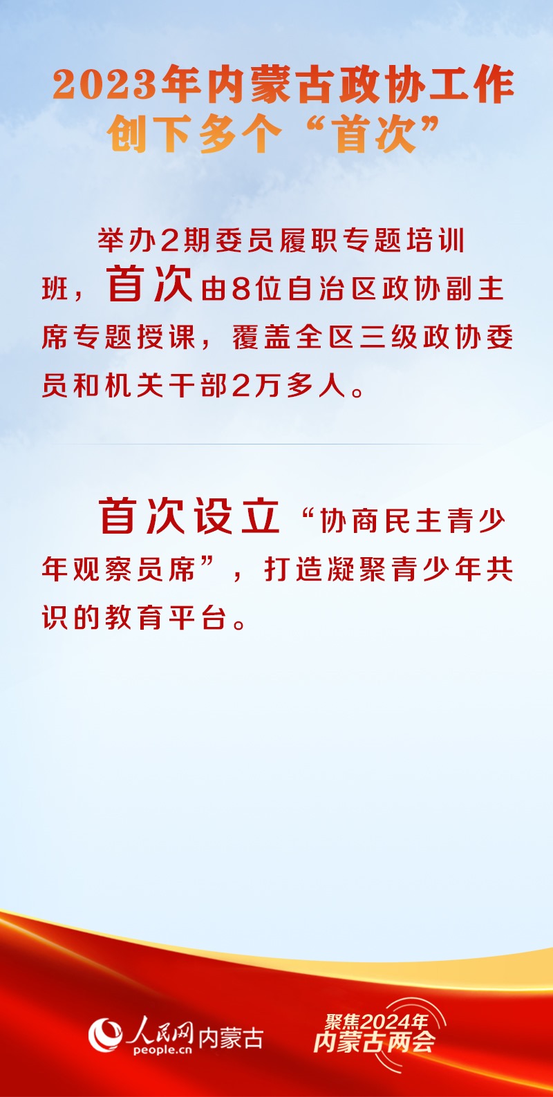 1月29日上午9時,中國人民政治協(xié)商會議第十三屆內(nèi)蒙古自治區(qū)委員會第二次會議在內(nèi)蒙古人民會堂開幕。2023年,內(nèi)蒙古自治區(qū)政協(xié)堅持以改革思維、創(chuàng)新理念、務(wù)實舉措推進履職能力建設(shè),推出多項創(chuàng)新舉措,開創(chuàng)了新時代政協(xié)工作新局面。