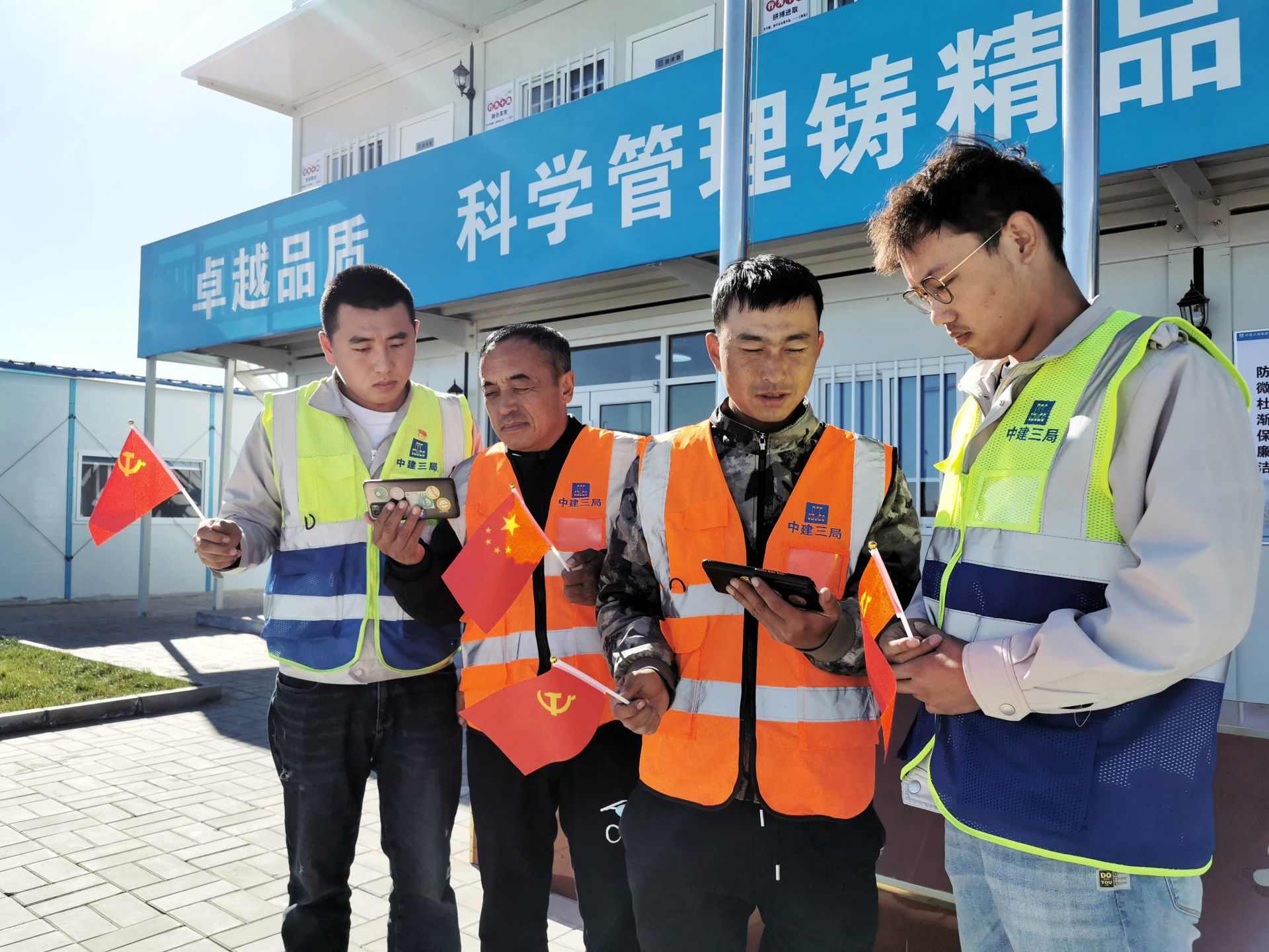 中建三局呼和浩特建設(shè)項目施工人員收看黨的二十大開幕會。曹楨攝