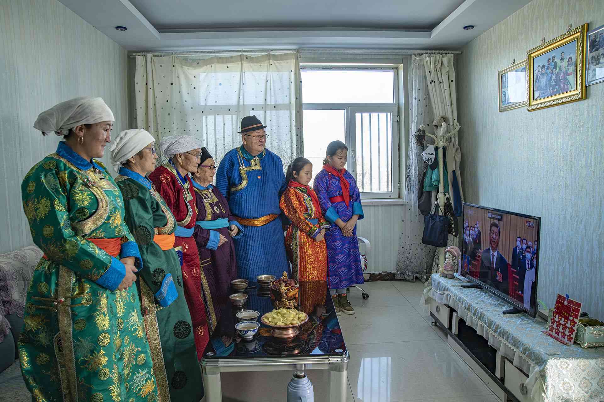 烏額爾很巴圖、斯琴格日樂是共產(chǎn)黨員,當(dāng)日他們與家人在錫林郭勒盟東烏珠穆沁旗烏里雅斯太鎮(zhèn)的家中收看黨的二十大開幕會。白嘎利攝